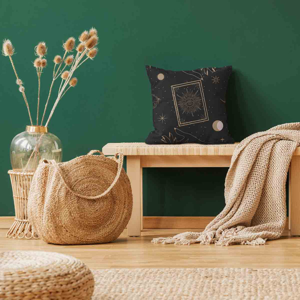 Cuscino sanitario nero con sole, luna e stelle