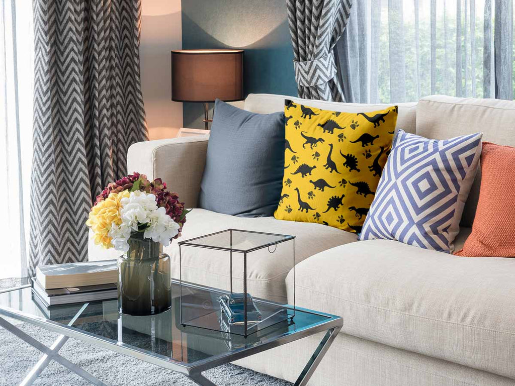Cuscino salute giallo con dinosauro