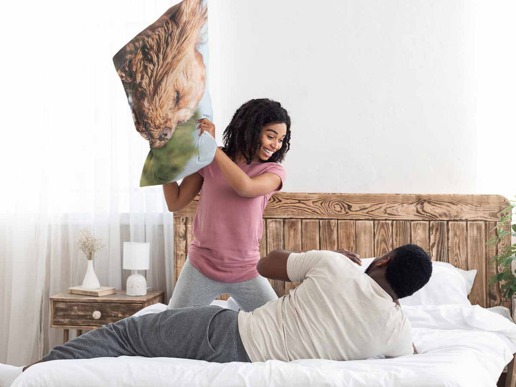 • Polyester: Polyester gefülltes Kissen + Bezug