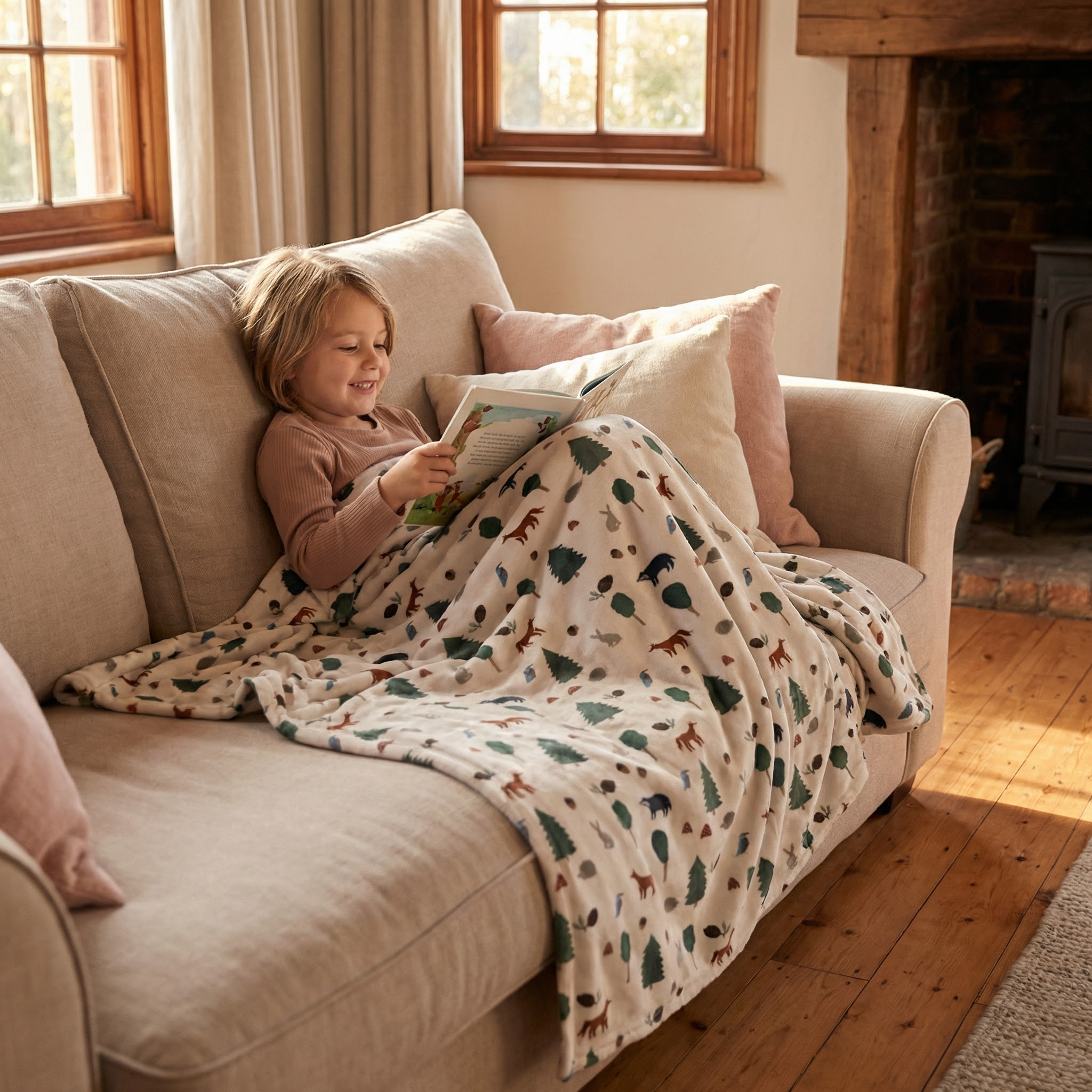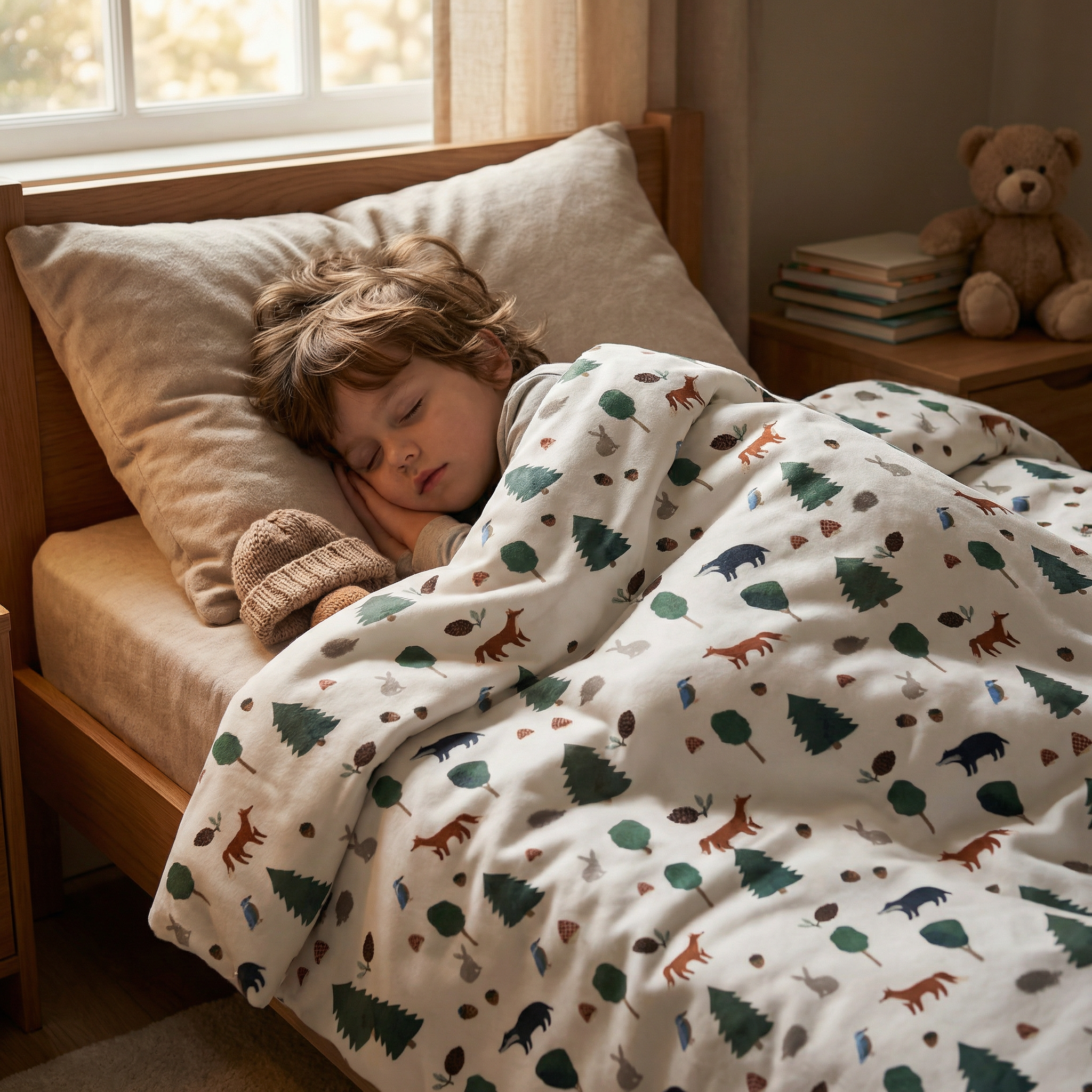 Coperta terapeutica originale - Coperta ponderata con animali della foresta con rivestimento in cotone per bambini