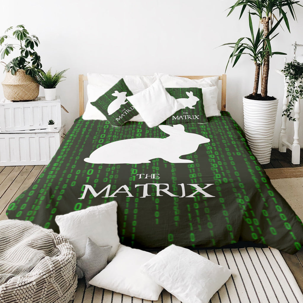Set di biancheria da letto con coperta terapeutica Matrix Code verde